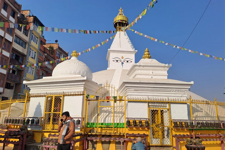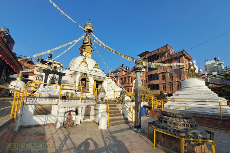 Next, we arrive at Bhaskar Varna Mahavihar, a sacred monastery that beautifully illustrates the harmony between Hinduism and Buddhism in Nepal. The square is dotted with historic stupas, a newly built Buddha statue, and a Hindu temple. Just nearby is Nagbahal Square, a lively Buddhist courtyard neighborhood filled with shrines, prayer sites, and traditional Newar homes—perfect for experiencing the living culture of Patan.